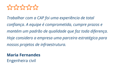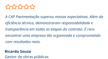 A CAP Pavimentação oferece soluções completas em infraestrutura, atuando desde a extração de materiais até a entrega final da obra. Trabalhamos com equipe qualificada, equipamentos modernos e gestão eficiente, garantindo segurança, qualidade e cumprimento rigoroso de prazos. Nossos processos seguem normas técnicas e ambientais, assegurando responsabilidade, confiabilidade e resultados duradouros em cada projeto.